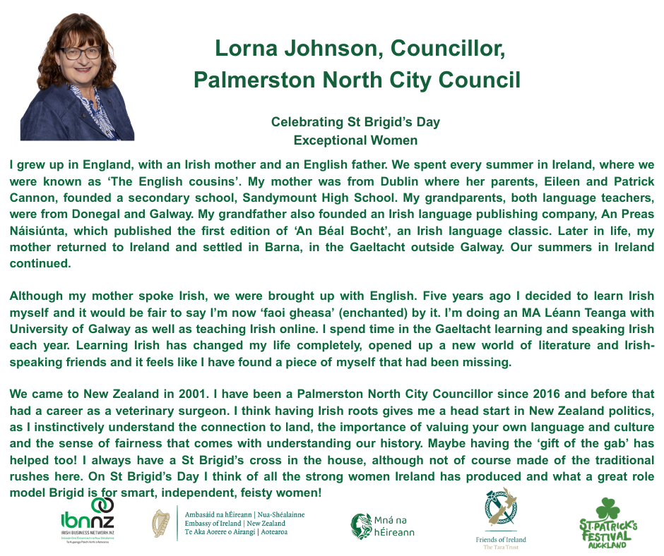 Continuing our celebration of St Brigid's Day. In collaboration with IBNNZ, St Patrick's Festival NZ, Embassy of Ireland New Zealand, and Mná na hÉireann we will be celebrating exceptional women in NZ. Brigid is the patron saint of poets. But that’s not all – she’s also the patron saint of midwives, newborns, Irish nuns, fugitives, blacksmiths, dairymaids, boatmen, chicken farmers, cattle, scholars, sailors, and no doubt many more. She is also, along with Patrick and Columcille, one of the three patron saints of Ireland. 1st of February - also marks the first day of Spring in the Northern Hemisphere.