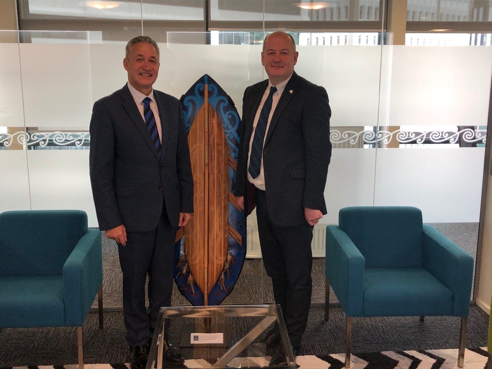 Ambassador Ryan with Dave Samuels, CEO of Te Puni Kokiri following their meeting 2020.