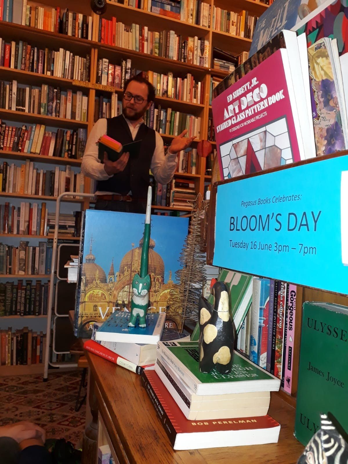 David Molloy reading Ulyssess at Pegasus Bookstore, Wellington.