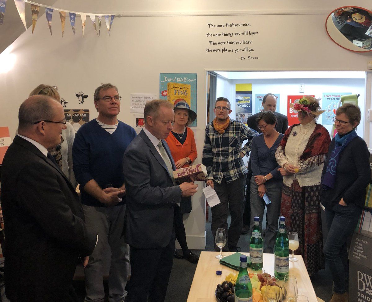 Minister reading Ulysses at the Bloomsday celebration in Another Chapter Bookshop, Wellington 2019