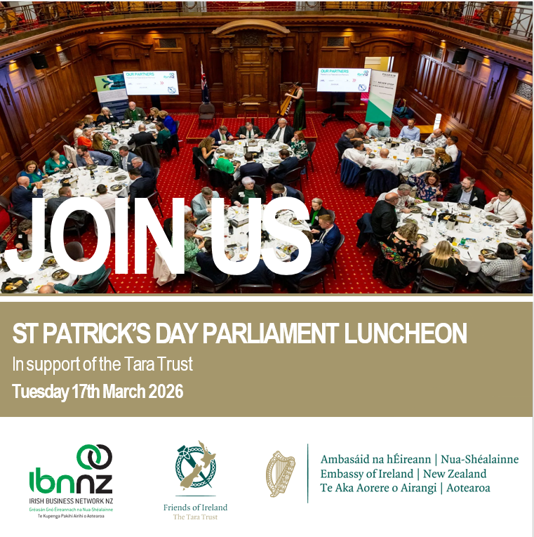 Guests will include H.E. Ms Jane Connolly, Ambassador of Ireland to New Zealand, and Mr Noel Grealish, T.D., Minister of State at the Department of Agriculture, Food and the Marine, alongside members and friends of IBNNZ.
